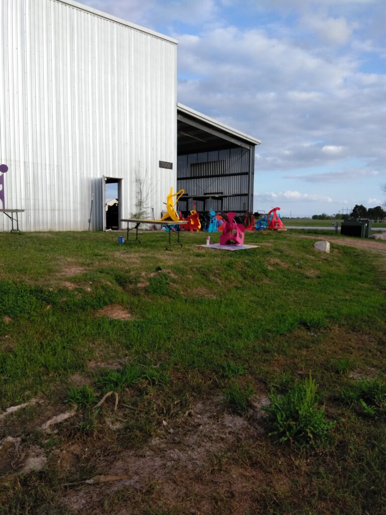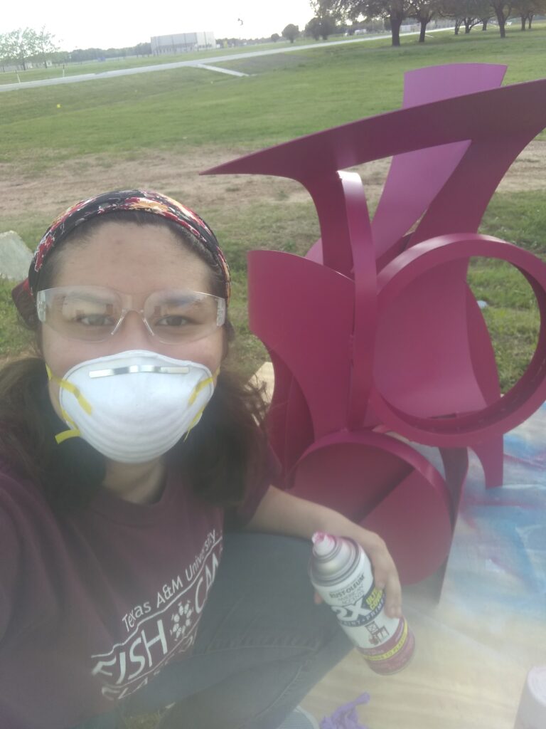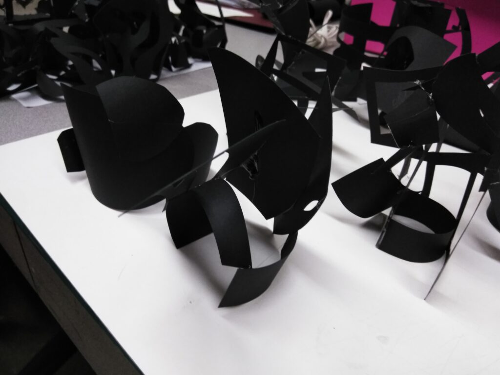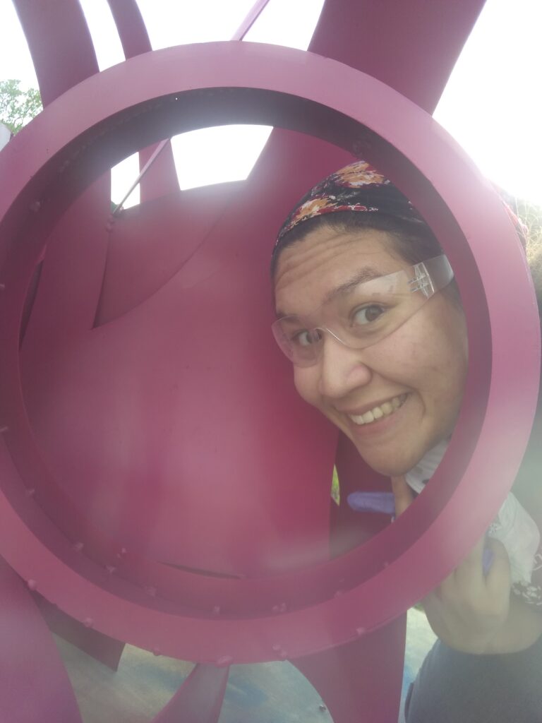 This was a welded abstract sculpture. Each student was provided a 10 by 10 foot sheet of steel that was cut by water cut into pieces based on their own design. We then shaped and welding the sculpture ourselves. I made it my goal to use every single with no scrape leftover and succeeded.